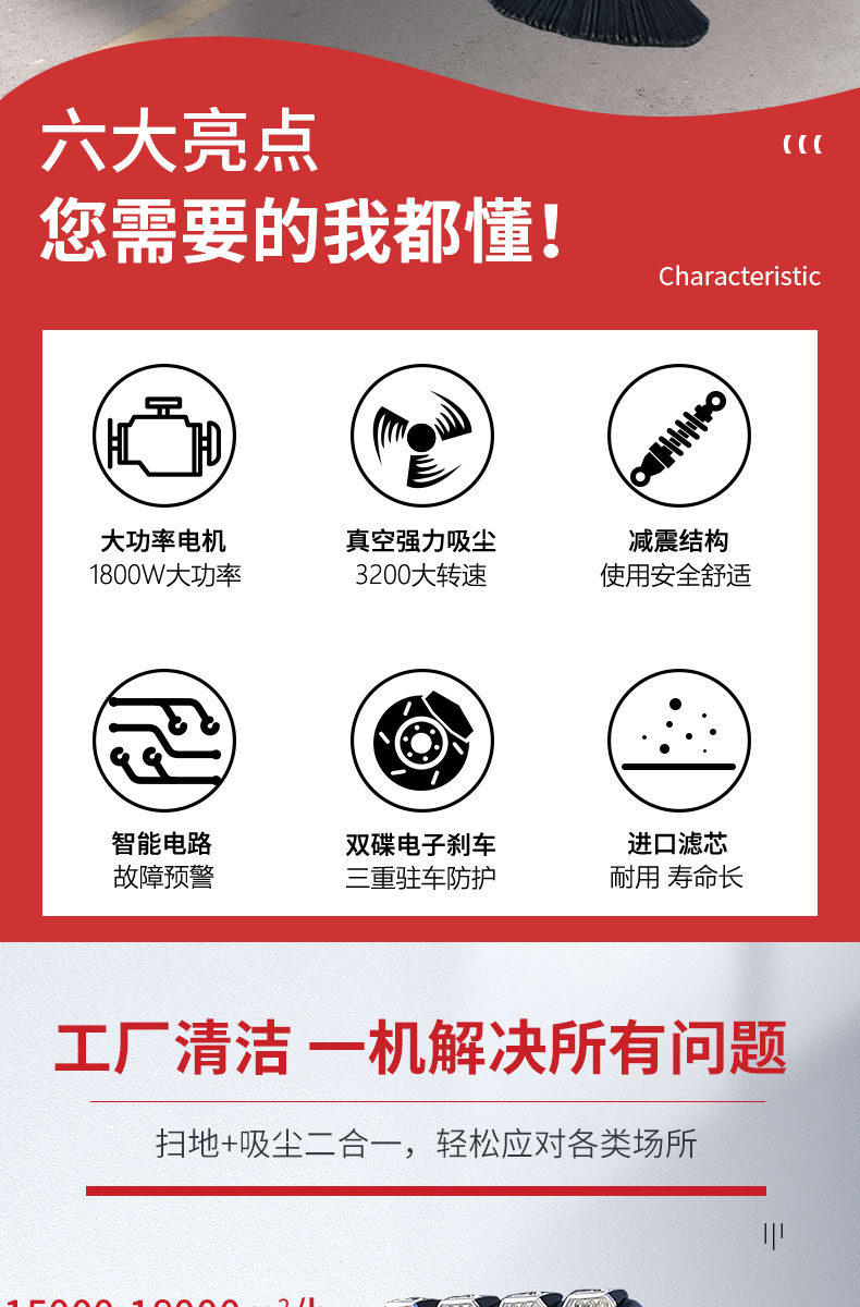 - HRD-2150全封閉駕駛式掃地車是宏瑞達環(huán)保根據(jù)市場客戶需求特研發(fā)針對粉塵企業(yè)的電動清掃車,配置雙風(fēng)機系統(tǒng),具有強大的吸塵能力,清掃寬度大可達2米,連續(xù)工作時間可達6-8小時,特別適合煤礦、水泥廠、雕刻廠、面粉廠、建材廠、金屬冶煉廠這種灰塵多的場所使用,用于工廠車間、商場、車站、廣場公園、景區(qū)等場所清掃效果會更加顯著。
