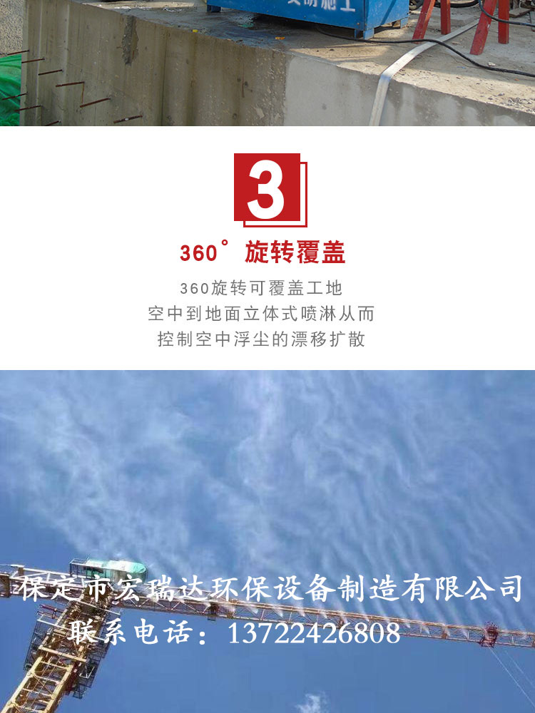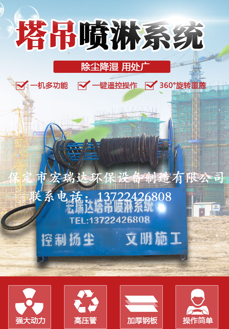 - HRD-80塔吊噴淋系統(tǒng)噴淋范圍廣,可以360度旋轉(zhuǎn),能夠有效地控制揚(yáng)塵,治污減霾,高溫天氣可以降溫,還可以預(yù)防并減少火災(zāi),可與市政管網(wǎng)連接取水,也可以與重復(fù)水回收系統(tǒng)相結(jié)合,有手動(dòng)、自動(dòng)兩種控制方式。