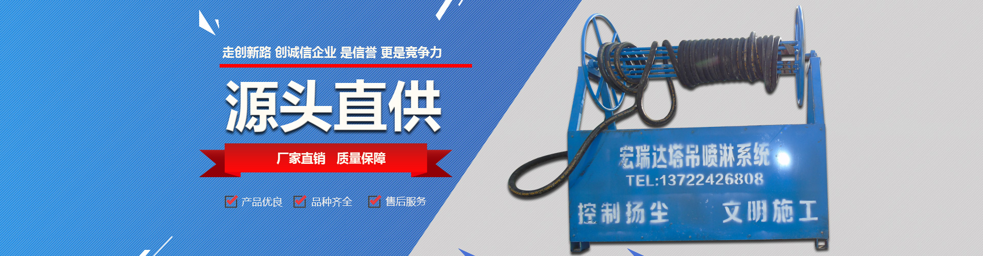 - HRD-50塔吊噴淋系統(tǒng)噴淋范圍廣,可以360度旋轉(zhuǎn),能夠有效地控制揚(yáng)塵,治污減霾,高溫天氣可以降溫,還可以預(yù)防并減少火災(zāi),可與市政管網(wǎng)連接取水,也可以與重復(fù)水回收系統(tǒng)相結(jié)合,有手動(dòng)、自動(dòng)兩種控制方式。