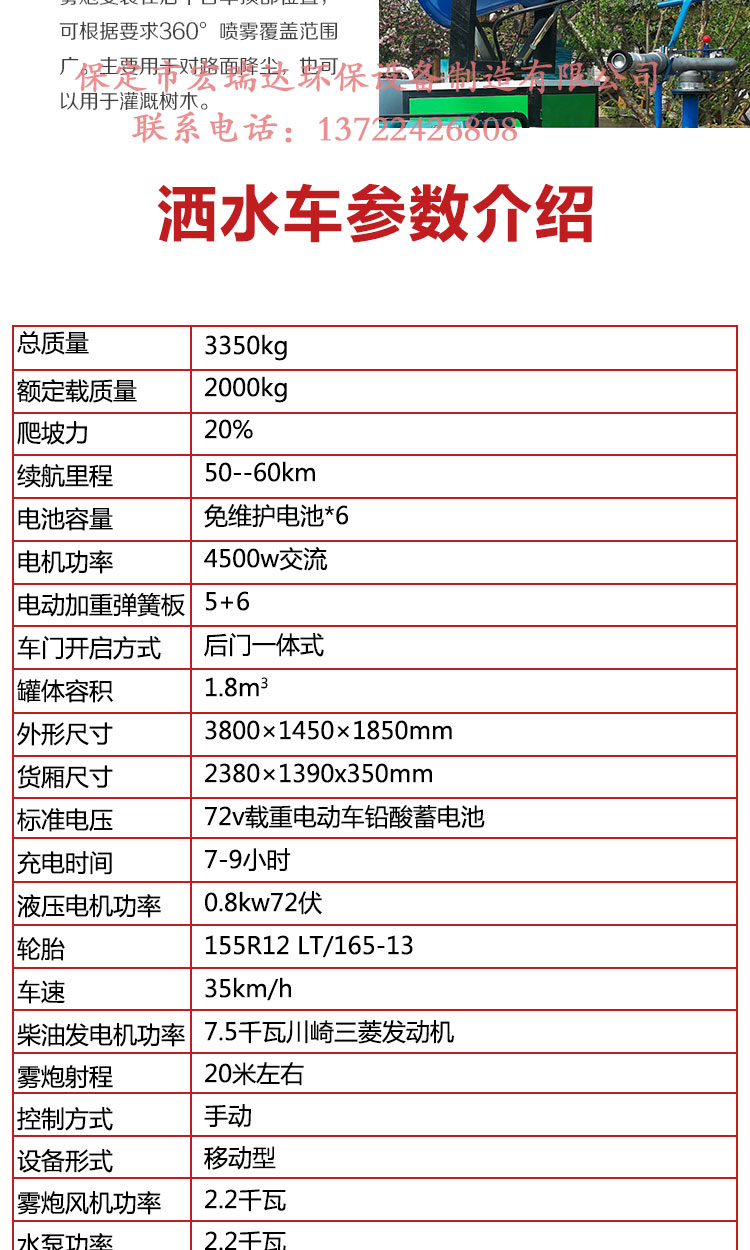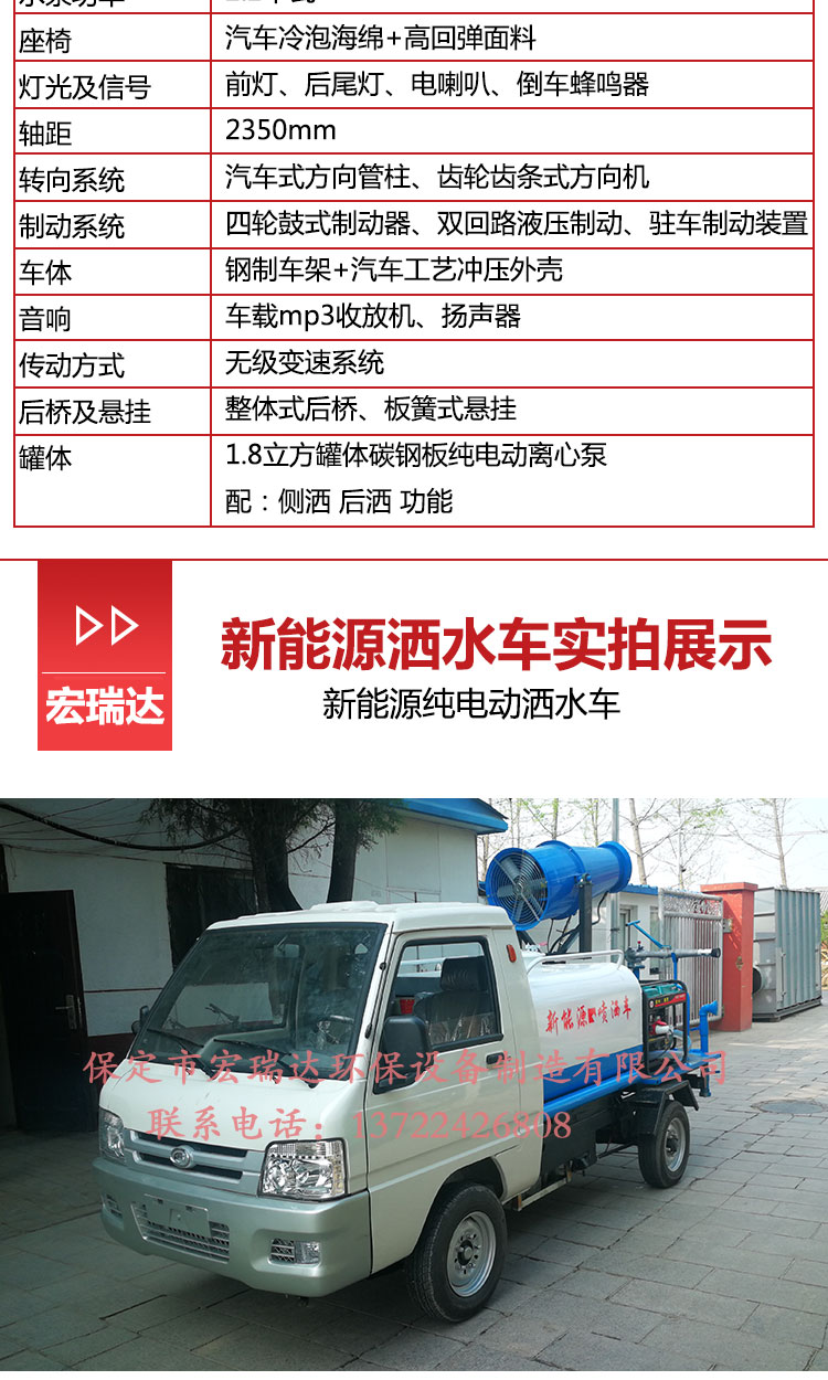 HRD-SW8新能源電動四輪灑水霧炮車